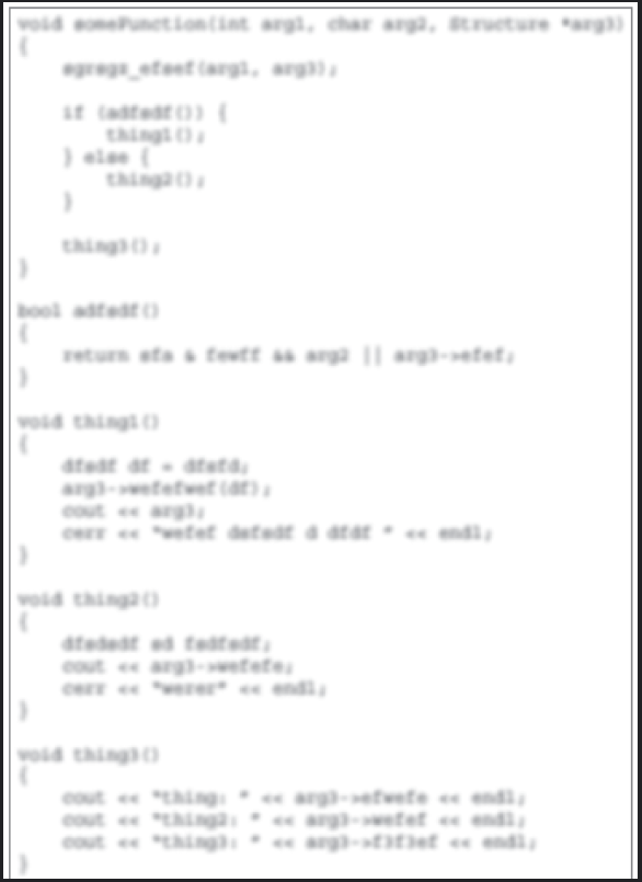 다음 코드를 고려한다. 코드는 잘 작성됐지만, 그것이 무엇을 하는지 즉시 드러나지 않을 수 있다. 이전에 본 적이 있다면 알고리즘을 인지할 수 있지만, 초보자는 아마도 코드가 작동하는 방식을 이해하지 못할 것이다.