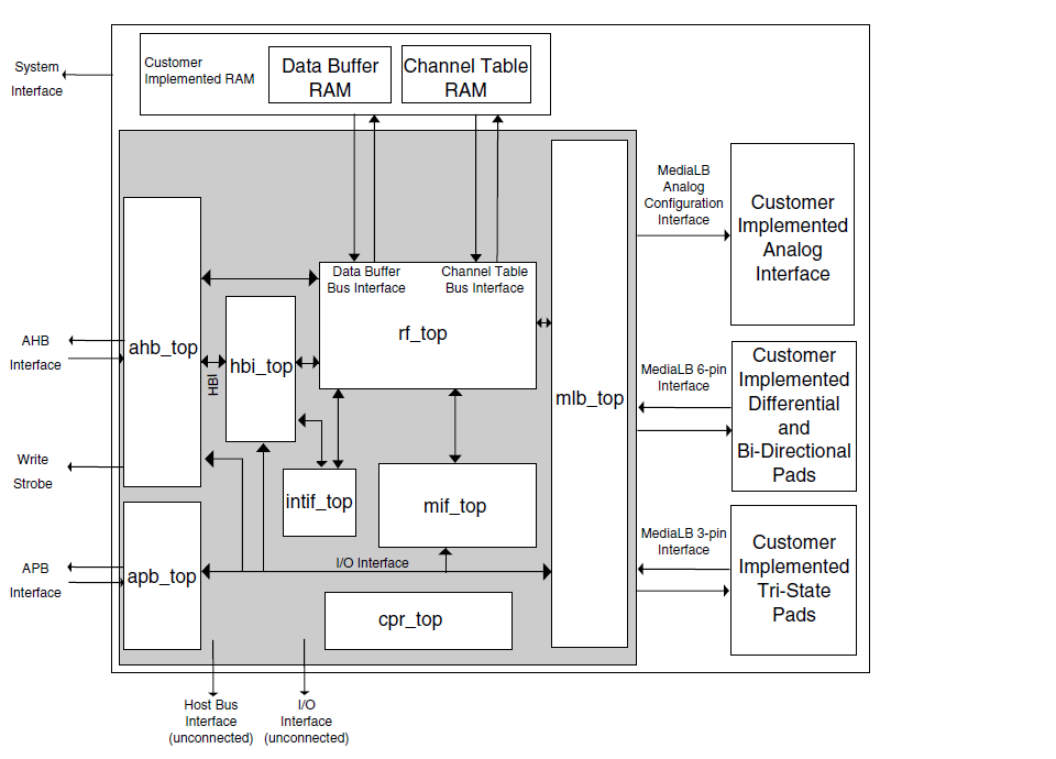 MediaLB 모듈은 MediaLB 사양의 Physical Layer와 Link Layer를 구현하여 i.MX를 MediaLB 컨트롤러에 연결한다.