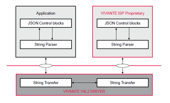 ISP 소프트웨어 V4L2 API는 ANSI C++ 코드로 작성되었으며, v4l2/video/sub 폴더에 정의되어 있다. 모든 명령은 커널 공간 작업을 직접 호출하는 IOCTL 인터페이스를 사용하여 사용자 공간에서 수행된다. IOCTL 컨트롤 용어는 IOCTL Interface and Commands에 설명되어 있다.