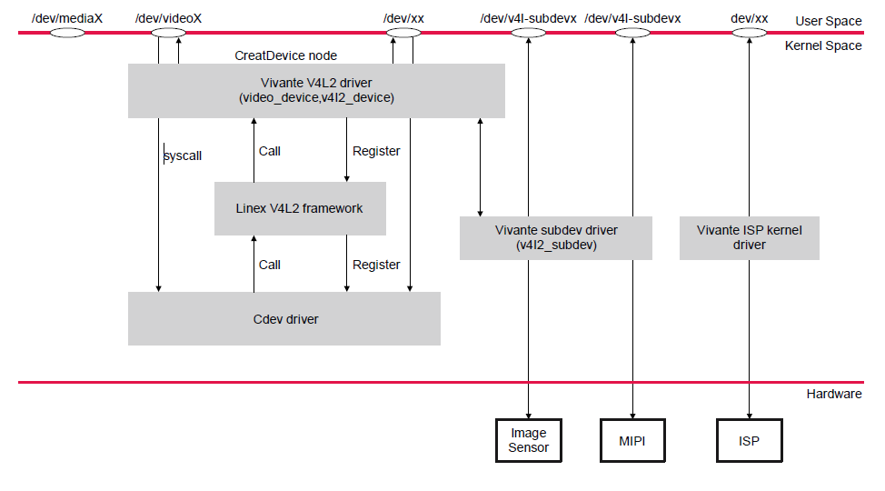 V4L2 커널 드라이버는 V4L2 사용자 애플리케이션의 API 명령과 요청을 처리한다. ISP 소프트웨어 스택과 통신하고 V4L2 사용자 애플리케이션에 이미지 버퍼를 전달한다.