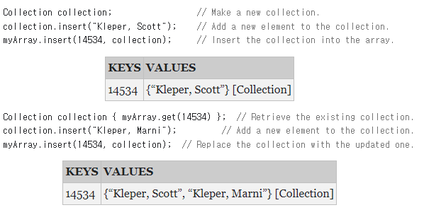 문자열 대신 컬렉션을 사용하는 것은 지루하고 반복적인 코드가 많이 필요하다. 아마도 MultiAssociativeArray라고 하는 별도의 클래스에서 이 다중 값 기능을 래핑하는 것이 좋을 것이다. MultiAssociativeArray 클래스는 배후에서 각 값을 단일 문자열 대신 문자열의 컬렉션으로 저장한다는 점을 제외하고는 AssociativeArray 처럼 작동할 것이다. 분명히, MultiAssociativeArray는 여전히 연관 배열을 사용하여 데이터를 저장하기 때문에 AssociativeArray와 어떻게 든 관련이 있다. 불분명한 것은 그것이 is-a 관계를 구성하는지 아니면 has-a 관계를 구성하는지 여부이다.