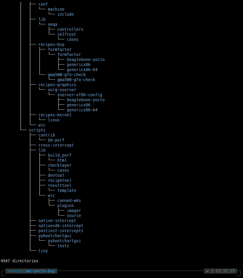 아래의 이미지는 "repo init" 실행 후 "imx-yocto-bsp" 디렉토리 계층의 전체 출력이다.