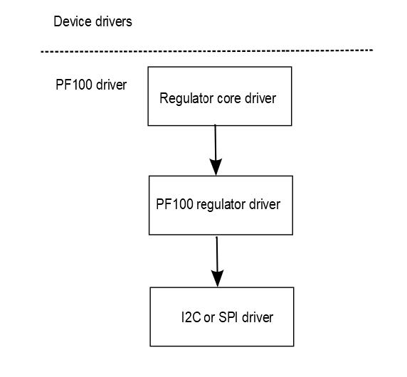 PF200/PF3000은 동일한 PF100 드라이버를 공유하기 때문에 거의 변경이 없는 PF100 기반이다. PF100 레귤레이터 드라이버는 전원 공급 레귤레이터의 저수준 컨트롤, 전압 레벨 선택, 레귤레이터 활성화/비활성화를 제공한다. 이 디바이스 드라이버는 PF100 하드웨어 컨트롤 레지스터에 액세스하기 위해 PF100 레귤레이터 드라이버를 사용하도록 한다. PF100 레귤레이터 드라이버는 레귤레이터 코어 드라이버를 기반으로 하며 커널 I2C 버스에 연결되어 있다.