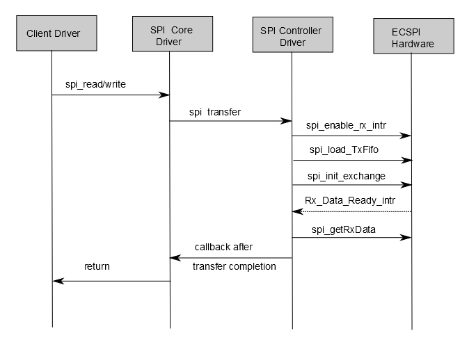 ECSPI 드라이버는 ECSPI 컨트롤러에 대한 표준 Linux 드라이버 인터페이스를 구현한다.
