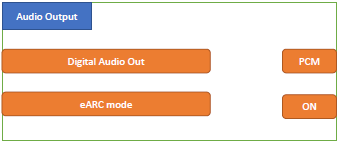 arecord -Dsysdefault:CARD=imxaudioxcvr -c2 -r48000 -fS32_LE - twav | aplay -Dsysdefault:CARD=wm8960audio - TV에서 Digital Audio Out이 PCM인지 확인한다. 그런 다음, eARC mode를 ON으로 설정하고 i.MX 8M Plus EVK 잭에 연결된 헤드셋에서 오디오 출력을 확인한다. TV 설정은 다음 그림과 같아야 한다.