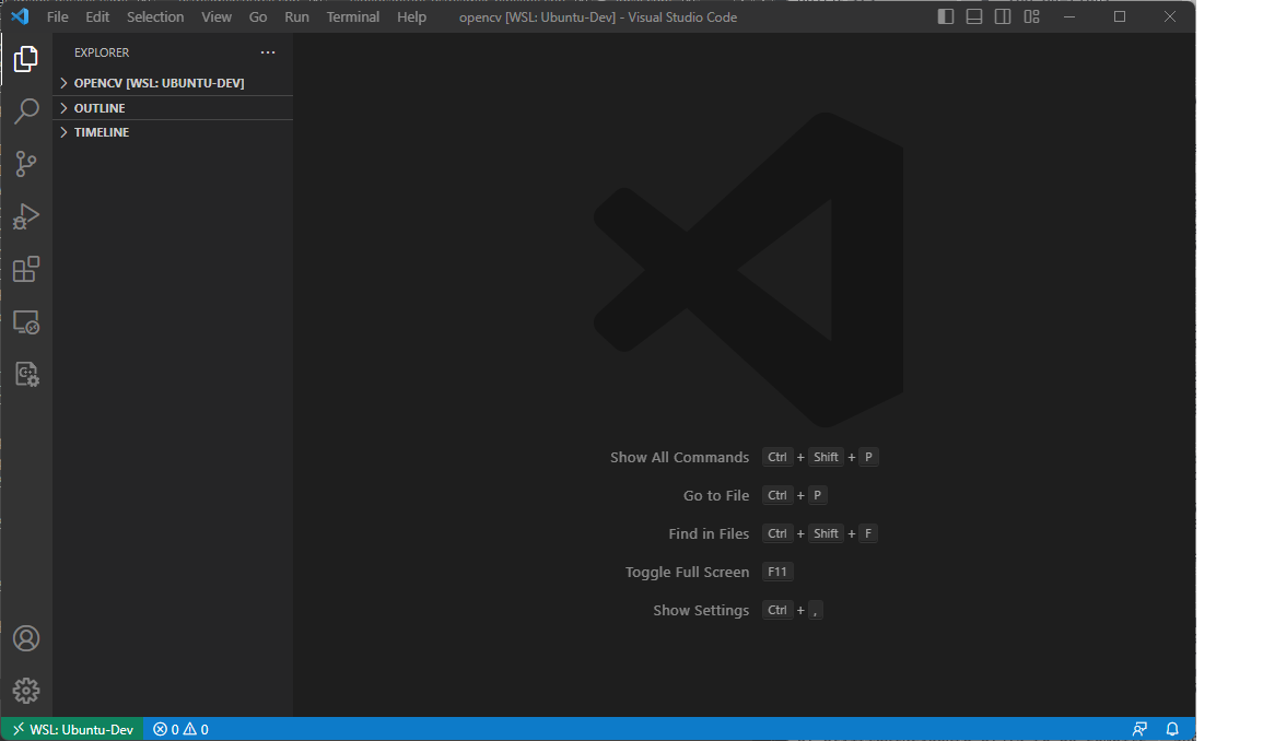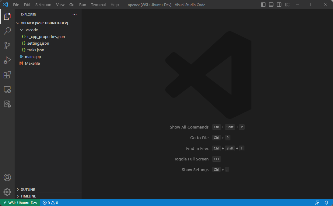 "opencv-test" 디렉터리를 생성하고 "opencv-test" 디렉터리로 이동 후, VSCode를 실행한다.