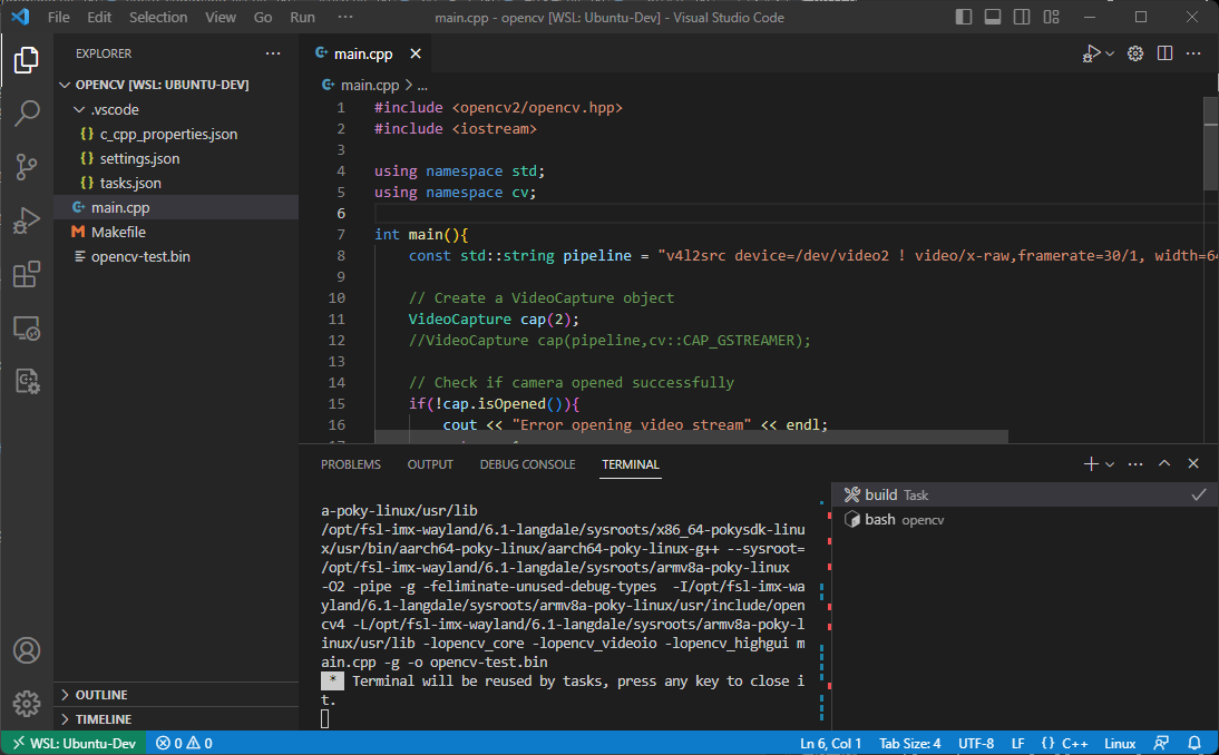 | Makefile | main.cpp를 opencv-test.bin으로 크로스 컴파일하기 위한 Makefile. |